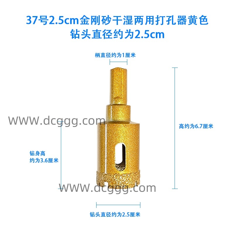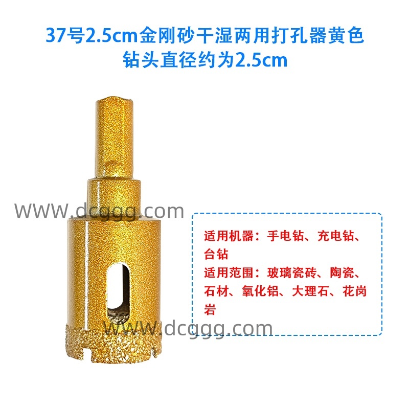 37号2.5cm金刚砂干湿两用打孔器黄色钻头直径约为2.5cm