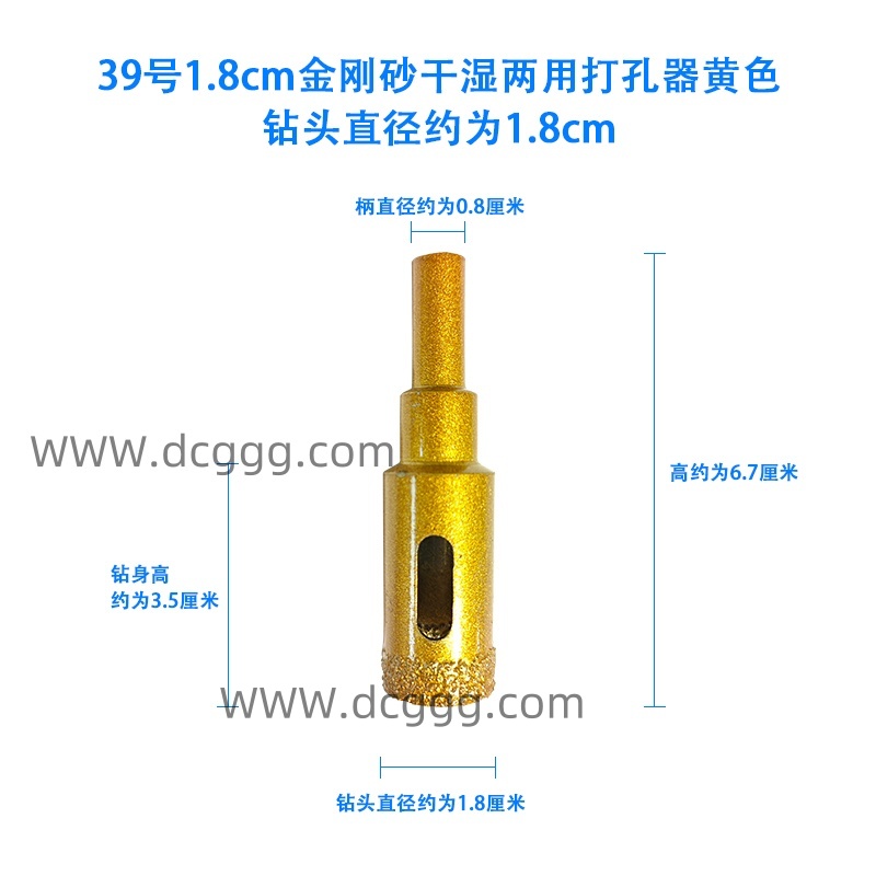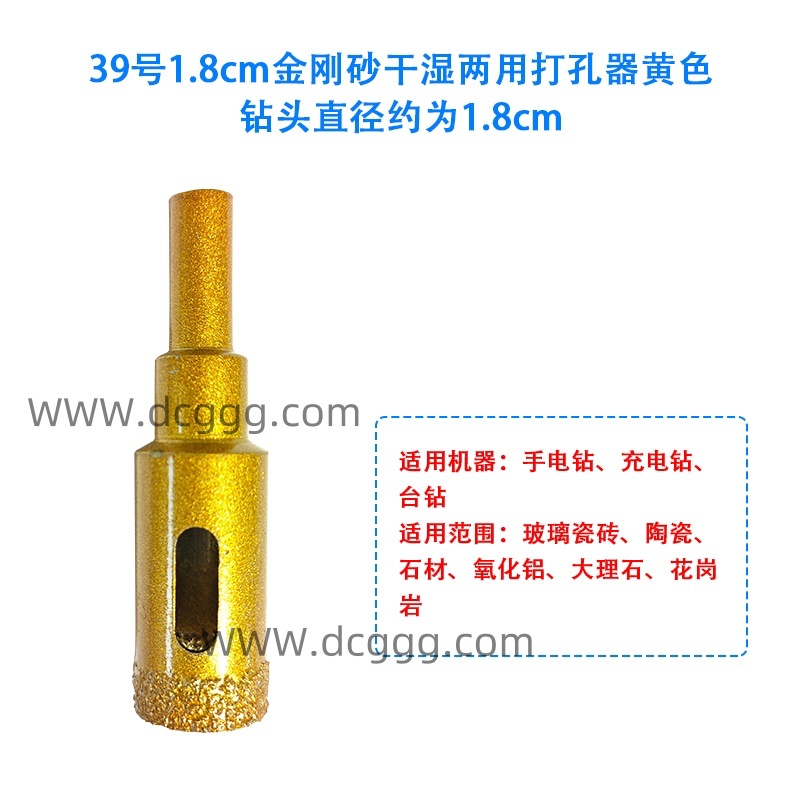 39号1.8cm金刚砂干湿两用打孔器黄色钻头直径约为1.8cm