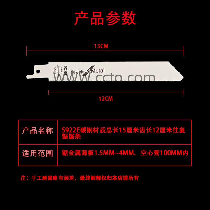 44号S922E碳钢材质总长15厘米齿长12厘米往复锯锯条
