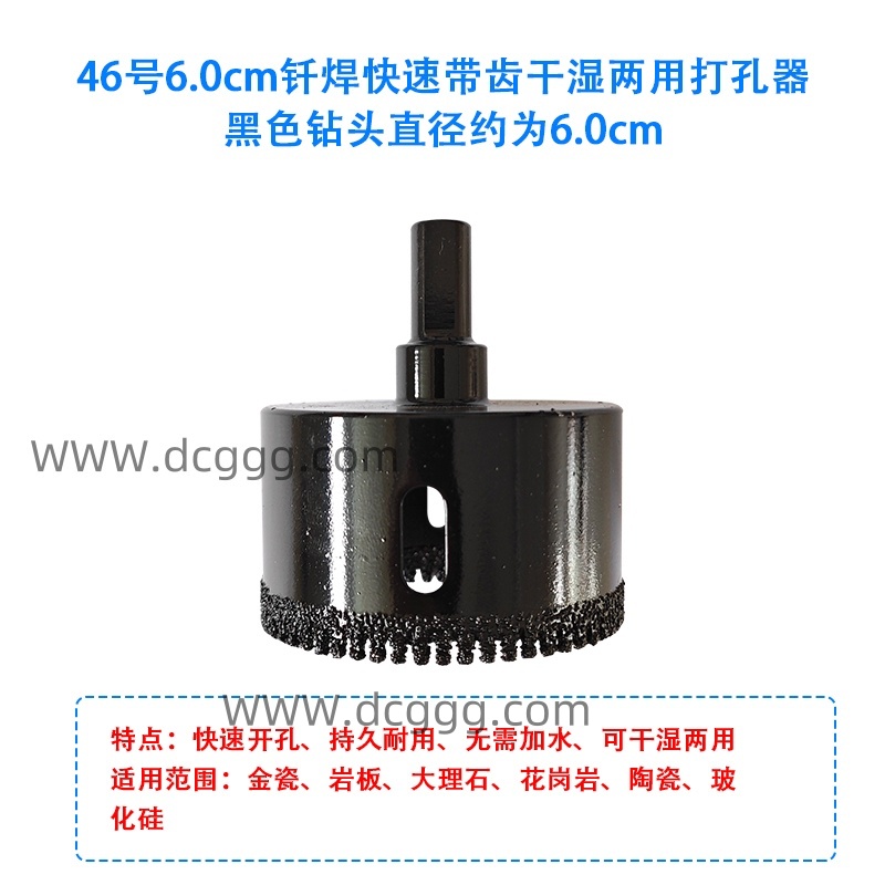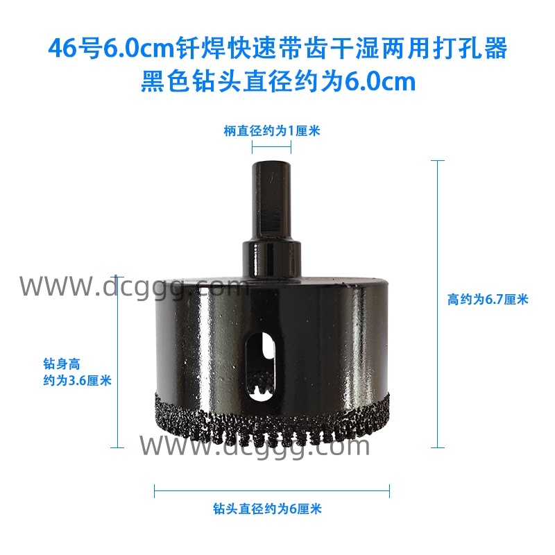 46号6.0cm钎焊快速带齿干湿两用打孔器黑色钻头直径约为6.0cm