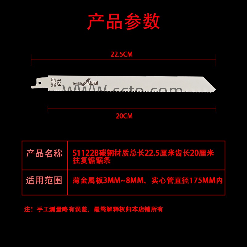 52号S1122B碳钢材质总长22.5厘米齿长20厘米往复锯锯条
