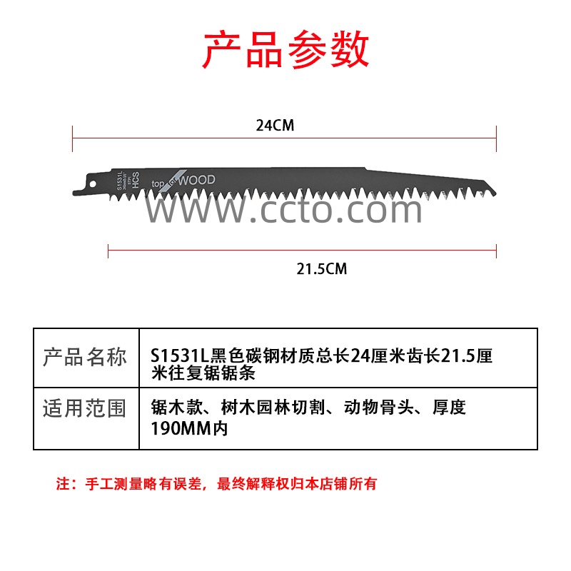 55号S1531L黑色碳钢材质总长24厘米齿长21.5厘米往复锯锯条
