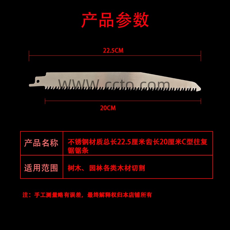 76号不锈钢材质总长22.5厘米齿长20厘米C型往复锯锯条